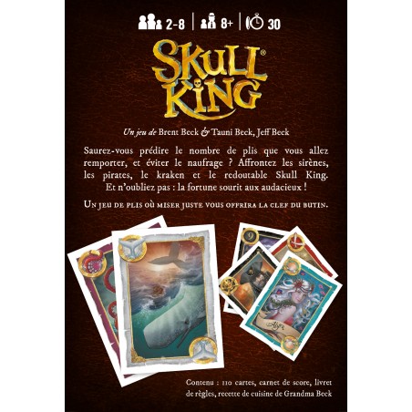 Skull King est un jeu de plis dans lequel vous pariez sur le nombre exact de plis que vous pensez réaliser à chaque manche. Tâchez de garder votre mise à flot tout en saisissant les occasions de couler vos adversaires…
