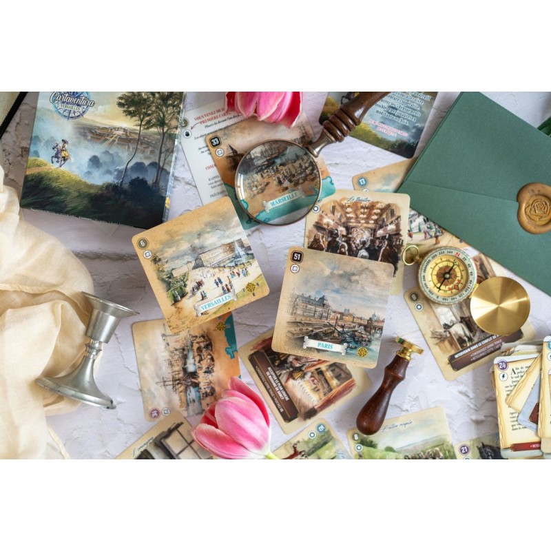 Cartaventura propose des aventures narratives qui transportent les joueurs dans différents lieux et époques de l’histoire - chacune retranscrite avec qualité et fidélité - sur les traces de grandes figures parfois méconnues. Les joueurs sont véritablement immergés dans l’Histoire grâce à des scénarios riches et de magnifiques illustrations à l’aquarelle, en hommage aux carnets de voyage. Un livret historique, rédigé avec l'aide de spécialistes, offre par ailleurs un complément d’information à chaque scénario.