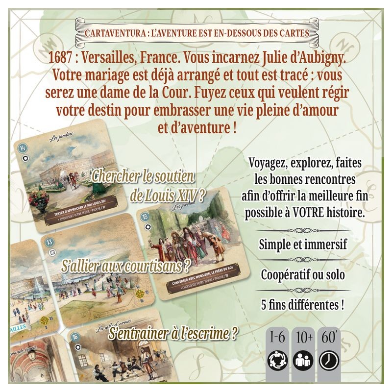 Cartaventura est une collection d'aventures historiques immersives au format poche. À l'aide de cartes qui proposent différentes options, voyagez, explorez et faites les bonnes rencontres afin d’offrir la meilleure fin possible à VOTRE histoire !