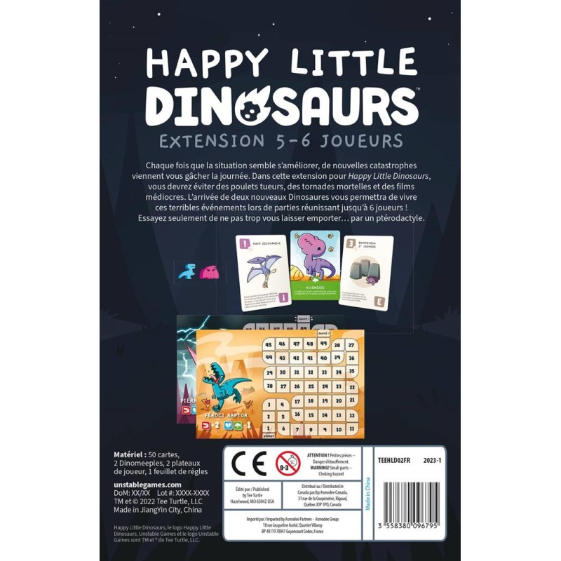 Entre les poulets tueurs et les tornades mortelles, faites survivre au maximum vos dinosaures dans cette extension permettant de jouer à 5 et 6 joueurs !
