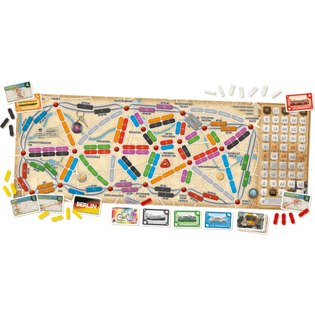 Une nouvelle déclinaison des célèbres Aventuriers du rail. Parcourez la capitale allemande et visitez le musée de Pergame ou la porte de Brandebourg ! Dans cette édition, utilisez deux modes de transports, les tramways et les métros pour un nouveau défi, abordable par les débutants et défiant les joueurs aguerris.
