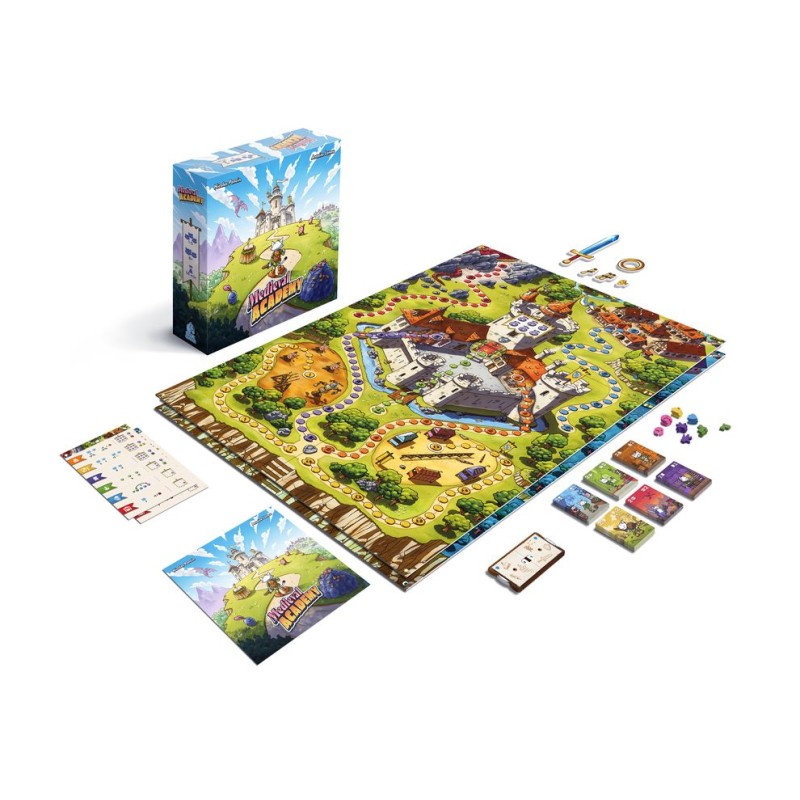On distribue 5 cartes Apprentissage à chacun puis s'en suivront 4 tours de draft lors desquels on constituera sa main. Ensuite, à tour de rôles, chacun jouera une carte pour avancer son pion sur l'une des différentes pistes représentant les 7 disciplines chevaleresques.