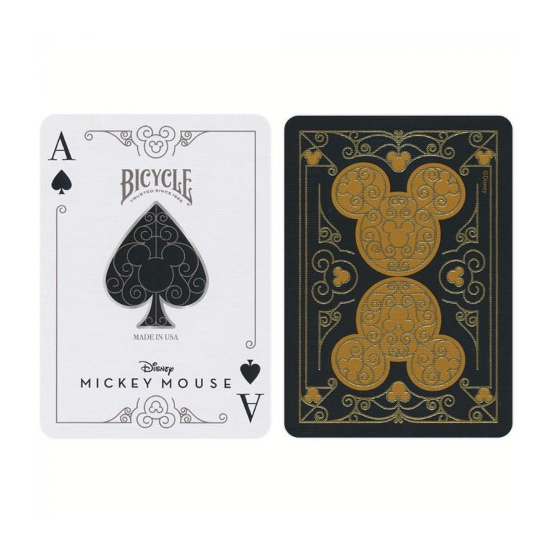Mickey Mouse est une icône culturelle mondiale et un véritable ami pour tout le monde. Il encourage les fans de tous âges à faire preuve d'originalité et de créativité tout en suscitant le bonheur dans le monde entier. Les cartes à jouer Mickey noir et or de Bicycle sont un exemple de luxe et de style avec des éléments de design délicats, des Mickey cachés et une feuille d'or estampée à chaud sur le dos de chaque carte.