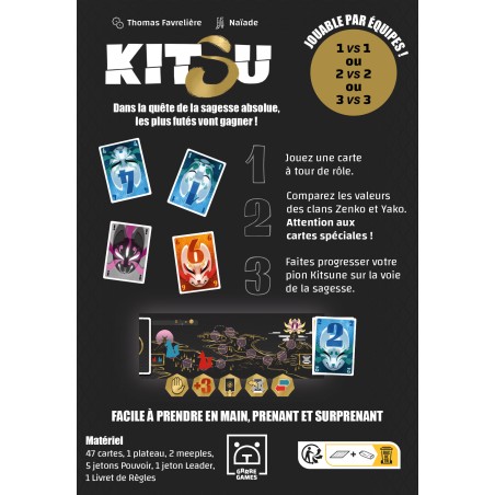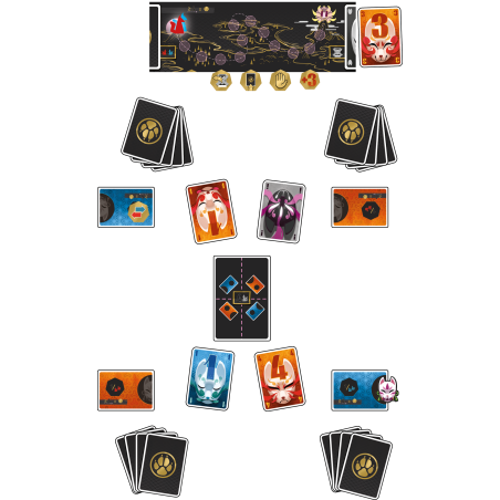 Seul ou en équipe, associez vos cartes pour faire progresser votre Kitsune sur la piste de la Sagesse.