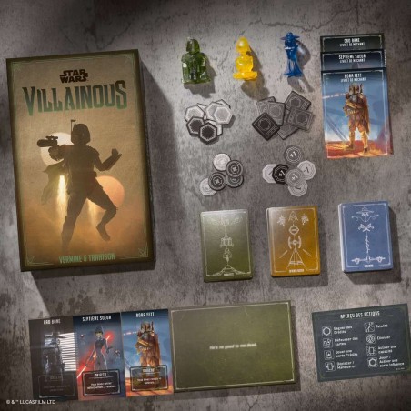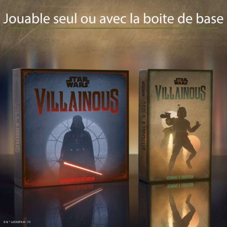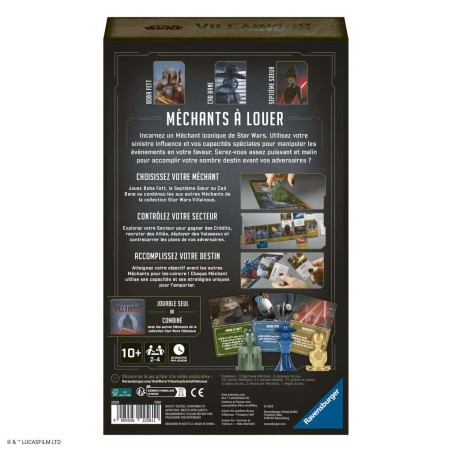 Pour y parvenir, utilisez astucieusement vos capacités spéciales et tentez de ruiner les plans de vos adversaires. Car ce n’est qu’en dictant avec succès vos règles aux héros de Star Wars que vous pourrez espérer une fin… malheureuse ! Réveillez le Mal qui est en vous… Suivez vos propres plans machiavéliques, soyez opportunistes et stratège pour devenir le plus grand méchant de Star Wars ! Avec ces 3 nouveaux méchants vous aurez encore plus de possibilités de faire le mal ! Jouable seul ou combinable avec n'importe quel autre jeu de la collection Star Wars Villainous.