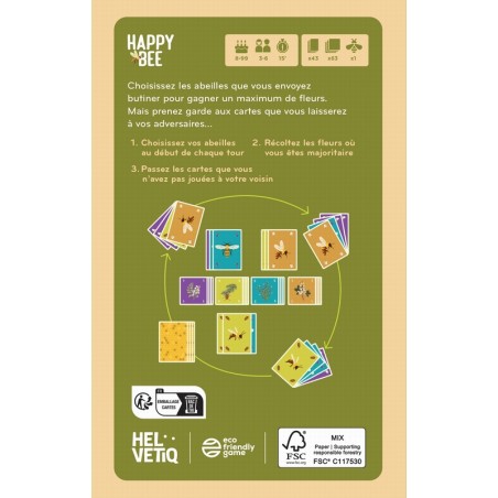 Dans Happy Bee, vous collectionnez les cartes fleurs en choisissant bien les abeilles que vous allez jouer. Faites le bon choix car vous laisserez les autres à votre voisin.