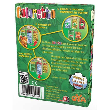 Michael Schacht avec Coloretto joue dans la cour des grands en créant un jeu du niveau des meilleurs Kramer ou Knizia. Coloretto est devenu aujourd’hui un classique, ayant lui-même inspiré Zooloretto, le Jeu de l’Année 2007. La beauté de cette nouvelle édition ne fait que rajouter un atout à ce formidable jeu de cartes.