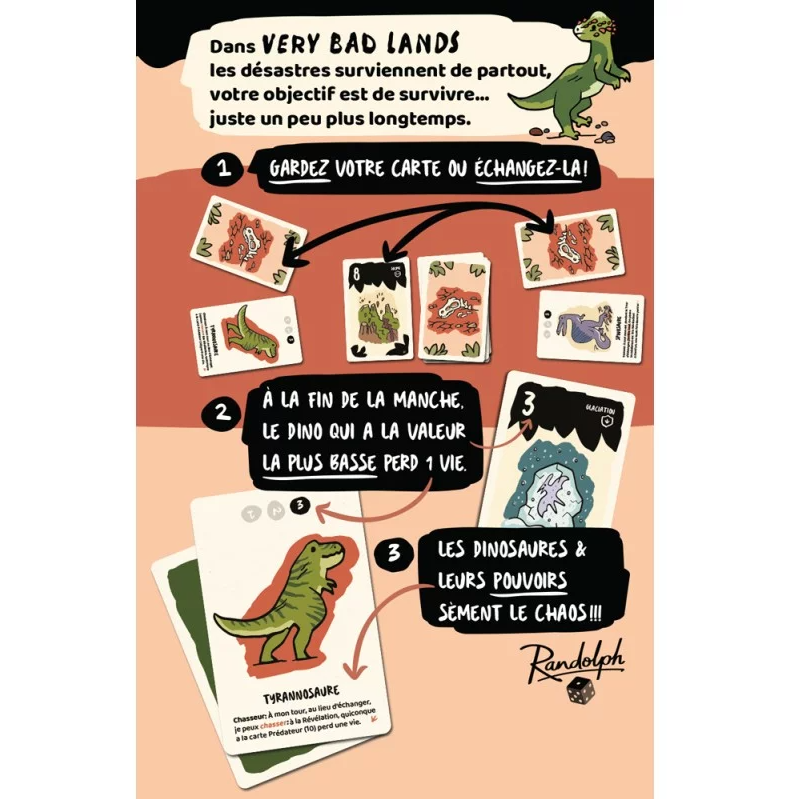 Dans Very Bad Lands vous incarnez des espèces de dinosaures qui luttent pour leur existence. Chaque espèce possède un pouvoir qui change la façon de jouer en apportant tantôt du chaos, tantôt du contrôle. Votre seul objectif est de survivre... Juste un peu plus longtemps.