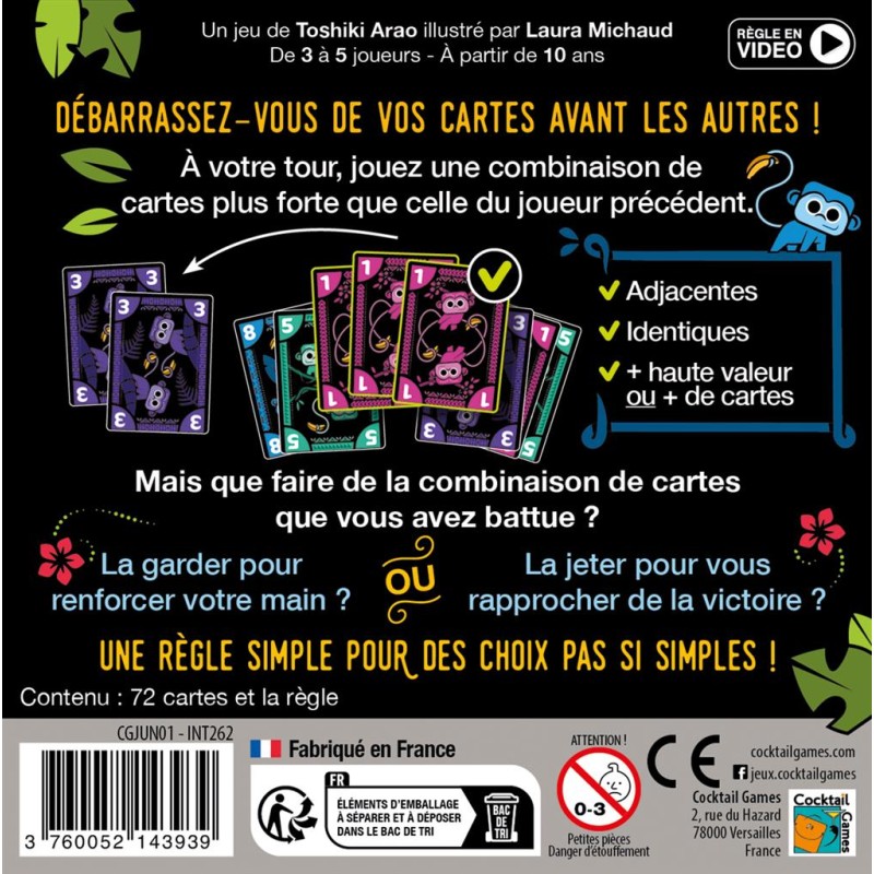 Jungo est un jeu de construction de main où le but est d’être le premier à se débarrasser de toutes ses cartes.