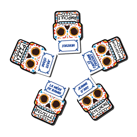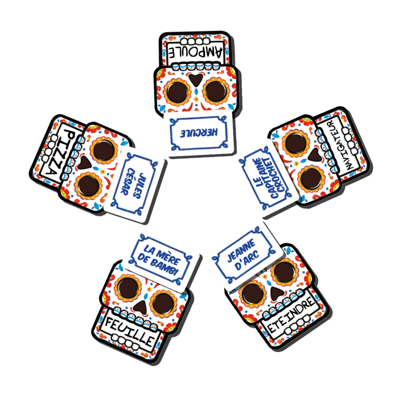 Les morts sont de retour dans Fiesta de los Muertos ! Choisissez un mot pour décrire votre personnage défunt, mais attention ce mot va passer de main en main, et se modifier peu à peu… Parviendrez-vous à retrouver votre personnage et celui des autres joueurs ?