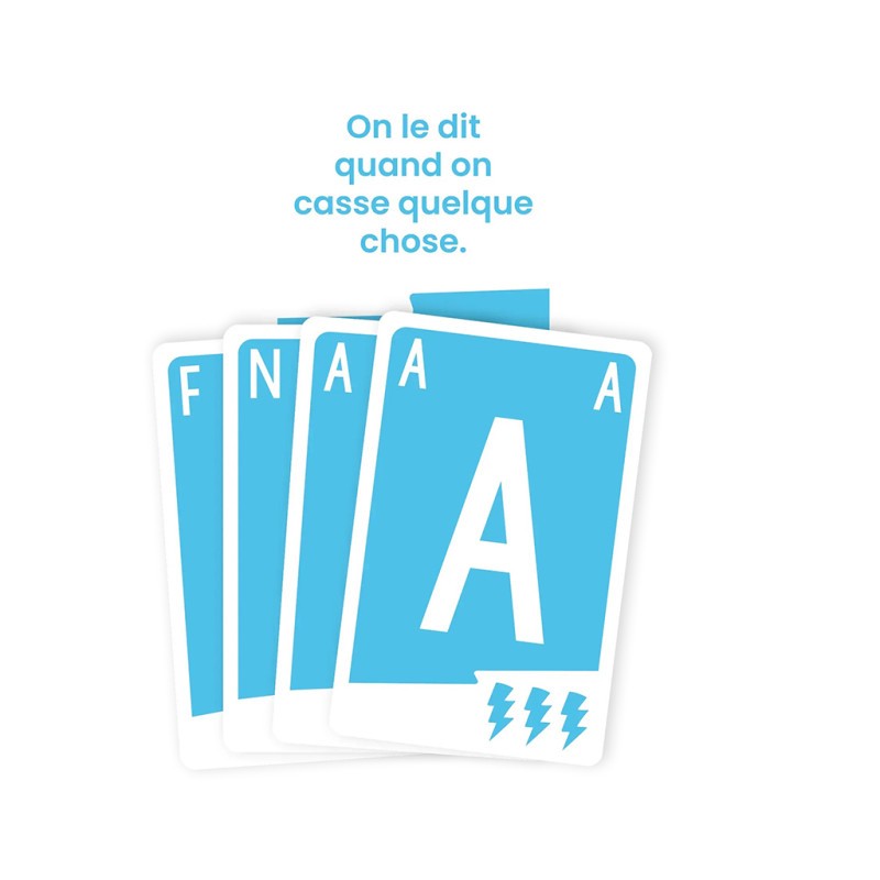 Débarrassez-vous de vos lettres en répondant plus vite que les autres à des thèmes rigolos et adaptés aux petits comme aux grands (Un animal rigolo, Une couleur dans un arc-en-ciel, Un métier rigolo…). Stimule l'imagination et la réflexion ! Parfait pour jouer en famille ou avec les copains. Règles expliquées en 1 minute !