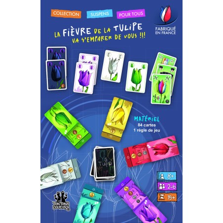 Posez et piochez des cartes « action » ou « tulip » pour acquérir le plus beau des jardins mais surtout le plus rentable. Pour cela, influez sur la valeur des tulipes, naviguez au milieu de fluctuations incertaines, anticipez les pertes de valeur de certaines tulipes mais aussi leur retour au premier plan.