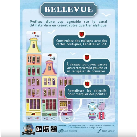 Bellevue est un jeu de pose de cartes agréable dans lequel vous créez votre rue en construisant des maisons d’architecture flamande typique sur le canal d’Amsterdam.