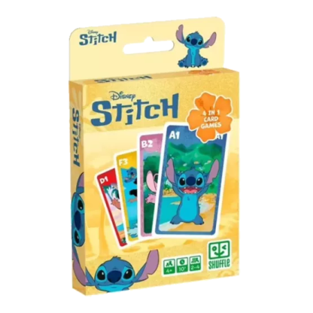 Retrouvez Stitch et ses amis dans ce jeu de cartes. Découvrez 4 règles de jeux différentes pour seulement 1 jeu de cartes : jeu de 7 Familles, jeu de paires, jeu d'action et jeu de Batailles.