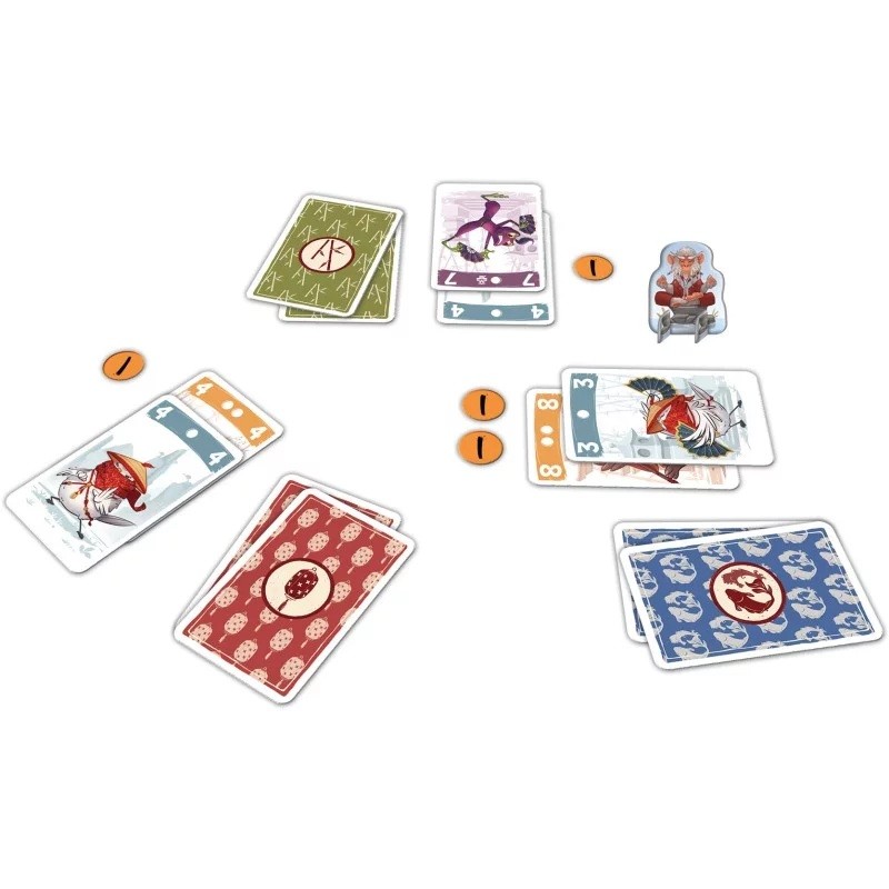Chacun dispose de son propre jeu de 24 cartes, numérotées de 1 à 8 et déclinées en trois couleurs.