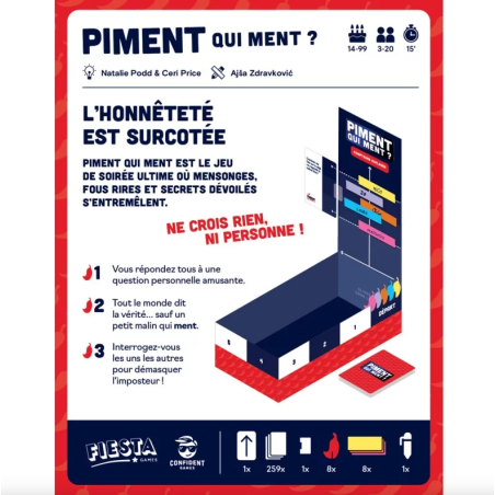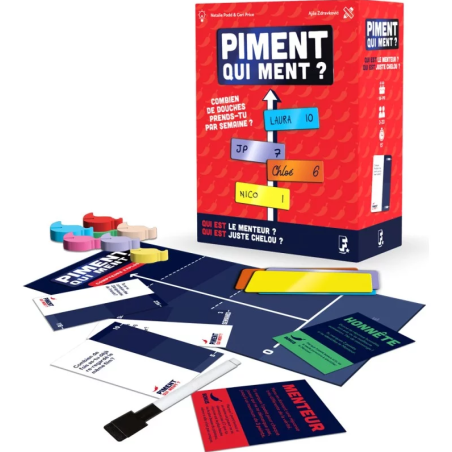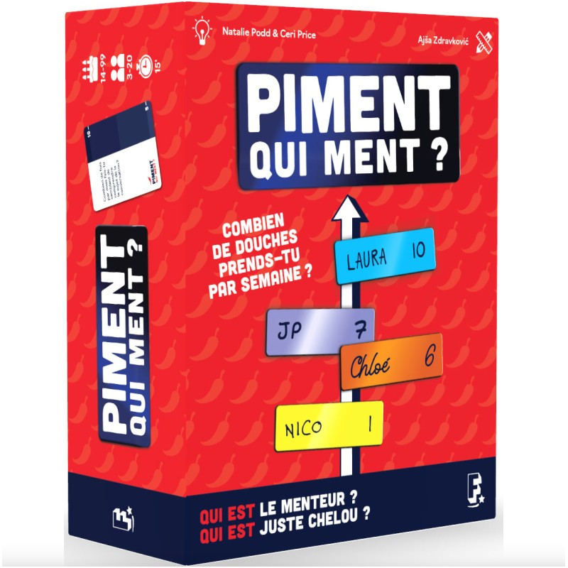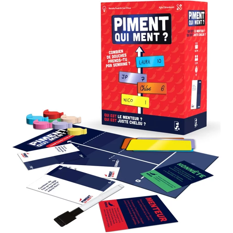 Piment qui ment est le jeu de soirée ultime : mensonges, fous rires et secrets dévoilés s'entremêlent !