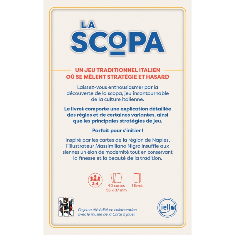 La Scopa a été édité en collaboration avec le musée de la Carte à jouer.