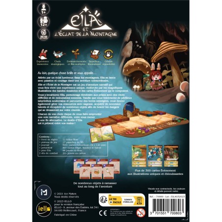 "Eila and Something Shiny" est un jeu de société axé sur l'histoire, conçu pour 1 joueur ou plus, et se déroulant dans un monde mystique. Incarnez le personnage d'Eila, résolvez des énigmes, gérez des ressources et surmontez des défis à travers des labyrinthes souterrains périlleux, des hauts plateaux enneigés impitoyables, et bien plus encore.