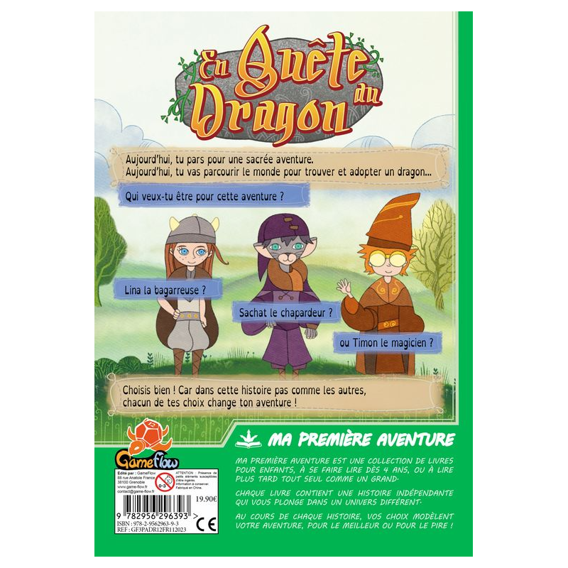 Maintenant, ton aventure peut commencer. Tu vas pouvoir lire ce livre normalement, de gauche à droite, mais rapidement, tu feras face à des choix matérialisés par des pages coupées en trois. Tourne la partie de ton choix et découvre ce qui va se passer. Après plusieurs choix, tu arriveras à la fin de ton aventure… Réussiras-tu à adopter le dragon ?