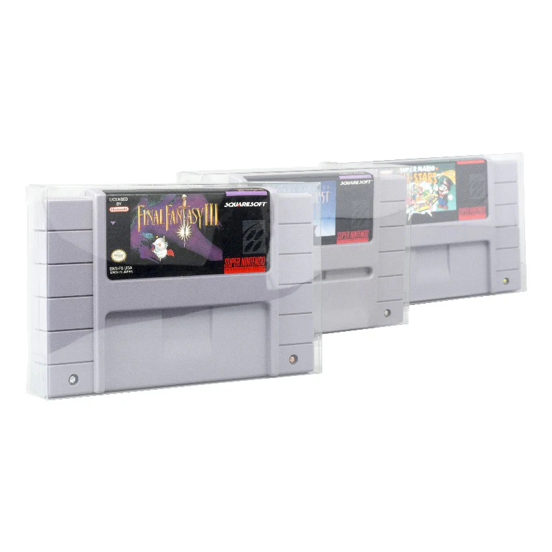 Pack de 25 boîtes de protection en PET haute qualité, conçues spécialement pour les jeux Snes et Super Nintendo en loose.
