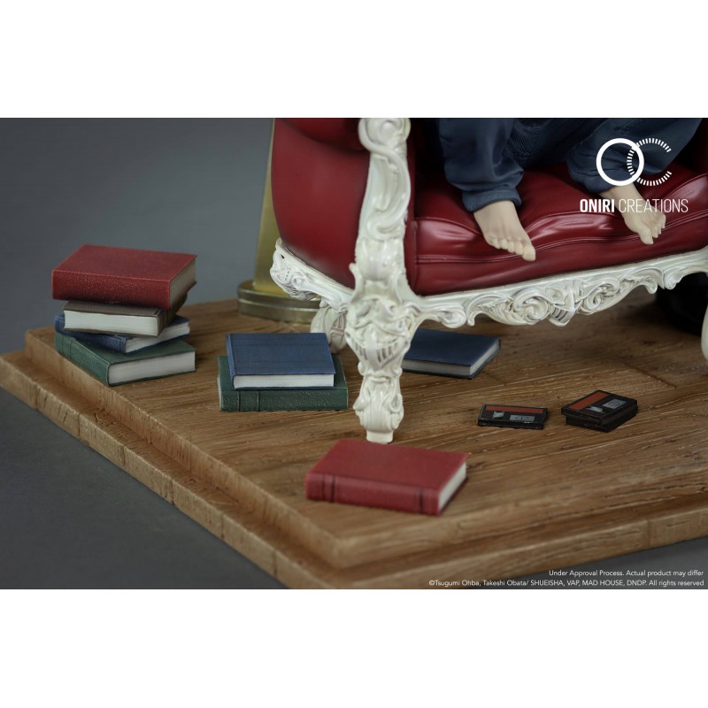 Le plus grand détective au monde ne serait rien sans ses livres, puits de savoir infinis pour notre héros. Jonchés sur le sol, ils montrent un L en pleine enquête, prêt à montrer qu'il est le meilleur dans son domaine.