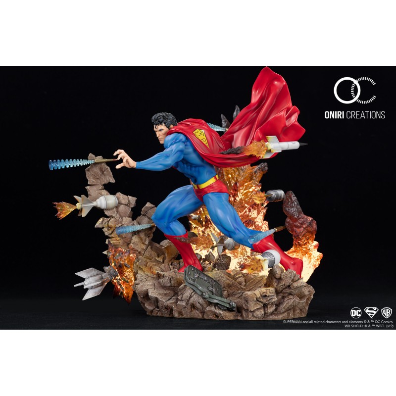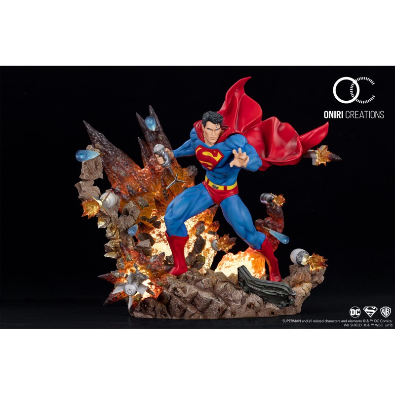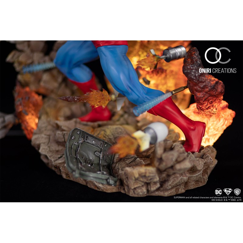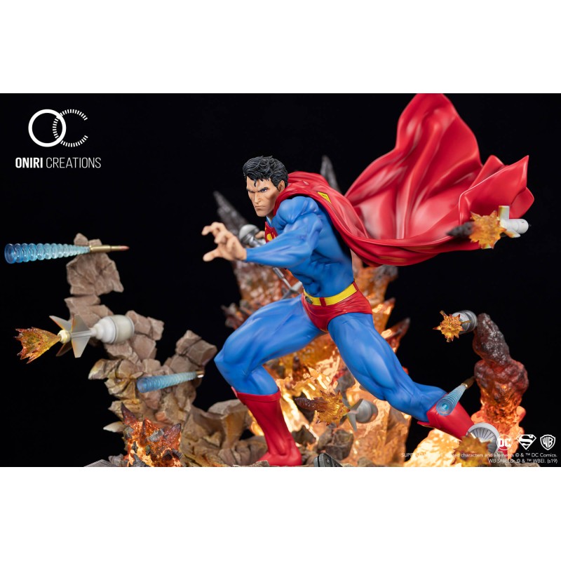 Bien que surnommé "Boy Scout", Kal-El sait aussi passer aux choses sérieuses, particulièrement lorsqu'il est pris d'assaut par une armée entière. Oniri a créé ce diorama dans le but de montrer Superman sous un angle différent de la plupart des concepts proposés à ce jour. Il est ici inarrêtable, malgré le chaos l'entourant.