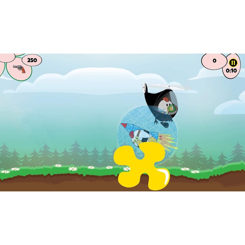 Le but du jeu est de tirer sur les poulets en utilisant tout un arsenal d’armes différentes ! Le jeu se déroule sur un champ deux fois plus large que l'écran, vous devez donc constamment déplacer votre réticule d'un côté à l'autre pour couvrir toute la zone de jeu.
